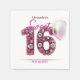 Celebrate in style with this customizable Sweet 16 paper napkin! The design features a dazzling "16" embellished with pink and white gemstones, adding a luxurious sparkle to the occasion. Above it, "Sweet" is elegantly scripted, complementing the chic aesthetic. A festive pink balloon enhances the celebratory vibe, while the customizable name and date ensure this keepsake is uniquely yours. Perfect for making every detail of your milestone event shine!