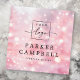 Cute business cards or personal profile cards with your custom logo, name and title/company name printed on the front on a light pink, sparkling glitter lights bokeh background. On the back is a template field for your contact information.