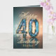 The design exudes elegance, featuring luxurious gold script declaring “Happy 40th Birthday,” paired with a dazzling “40” bedazzled in a sparkling gemstone-like pattern—radiating celebration and joy. The card’s background shifts gracefully from a soothing teal to a warm golden hue, evoking a sense of sophistication and festivity.
