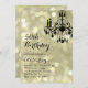 A fancy chandelier on a backdrop of gold lights accents this birthday invitation.