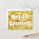 "Keep On Sparkling" quote on a sparkling gold bokeh glittery blurry background.