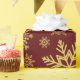 Gold glitter snowflakes on burgundy wrapping paper. A seamless pattern of snowflakes in different designs and shapes make this timeless, classic and traditional wrapping paper. A elegant winter design, minimalist and simple. Snowflakes in an illustration fitting for the Holiday season, festive events and Christmas.