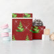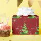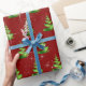 Sparkling Green Ribbon Christmas Trees On Red Wrapping Paper