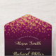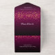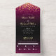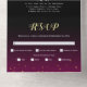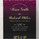 Sparkling lights in the sky burgundy winter night wedding invitation that showcases white and pale yellowish lights that sparkle on burgundy gradient background. The names are in script typography and the tear off RSVP card can be detached.