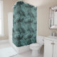 Turn the glam up a notch with this unique tropical print of overlapping palms leaves in a seamless pattern that adds a little sparkle and depth of shadows to the lush foliage. This striking shower curtain design is glittering shades from light teal to dark sea green. Search ID831 to see other colour options and additional products with this design.