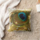 Glamourous holiday throw pillow with beautiful peacock feather, silver tinsel and sparkling Christmas lights