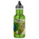 Glamourous holiday water bottle with beautiful peacock feather, shiny silver tinsel and sparkling lights
