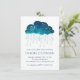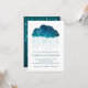 Adorable watercolor baby sprinkle shower theme featuring sparkling falling raindrops in moody shades of deep teal, turquoise, and aqua blue-green on white with teal raindrops on hand-painted monochrome dark teal mottled background. Easily personalize the template with your details in a clean, classic script. For customizations or other colours, please visit JustFharryn or contact the designer c/o fharryn@yahoo.com #zazzlemade