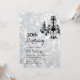 A fancy chandelier on a backdrop of silver lights accents this birthday invitation.