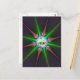 Bright and funky fractal design, abstract art, sparkling star in red and green on dark background.