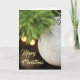 Sparkling White Bauble on Pine Branch with Lights Holiday Card