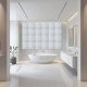This ceramic tile features a modern and elegant sparkling white terrazzo pattern. The design incorporates a mix of white and light grey specks, creating a sophisticated texture that adds a touch of contemporary style to any space.