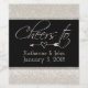 Chic full size wedding wine label done in a sparkling wine glitter look. A black text area, in the middle of the label, has a glittery heart and arrow and graphic text reading Cheers to. Personalize the two lines of custom text to read what you want.