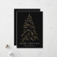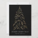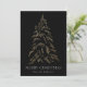 Modern & elegant holiday card featuring a snowy faux gold foil pine tree with a black background (or color of your choice). "Merry Christmas" is displayed in a white, modern serif font with your name or custom text below. The non-photo holiday card reverses to display three golden pine trees with your custom message below in white text. This design is perfect to use as your family Christmas card or business/corporate holiday card.