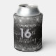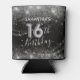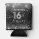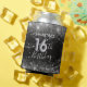 Sparkly 16th Birthday Silver Glitter & Black Can Cooler