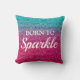Sparkly Blue & Dark Pink Glitter Born to Sparkle Throw Pillow