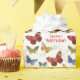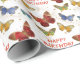 Beautiful glittery butterflies in various colours fly across the surface of this pretty birthday gift wrap paper. It's hard to see all the details, but the paper is overlaid with gold sparkle "dust" and little gold stars appear between the butterfly images. Your custom text is in red, and it's easily personalized or changed to anything you'd like. Very pretty for kids or adult birthdays.