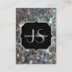 Personalize and customize elegant faux sparkly business card with your initial and name. Beautiful glamourous silver shiny glitters sparkles. Photo of silver mosaic sparkles not actual glitter.