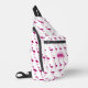 Sparkly flamingo Pink faux sparkles custom white Monogram Sling Bag. Monogram Personalize with your custom initial and name. Fun faux sparkly fashionable summer Accessories for her. Beautiful girly glamourous pink shiny glitters sparkles summer exotic flamingo bird. Photo of pink sparkles, not actual glitter! No messy glitter to the touch!