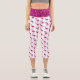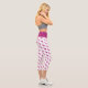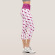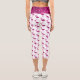 Sparkly flamingo Pink faux sparkles custom white Capri Leggings. Fun faux sparkly capri leggings fashionable summer apparel for her.