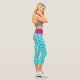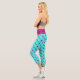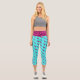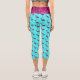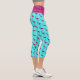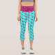 Sparkly flamingo Pink faux sparkles custom Teal blue Capri Leggings. Fun faux sparkly capri leggings fashionable summer apparel for her.