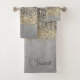 Sparkly Glittery Gold Leopard Personalized Bath Towel Set