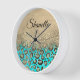 Sparkly Glittery Turquoise Leopard Personalized Clock