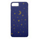Sparkly gold Christmas moon, stars on blue Case-Mate iPhone Case