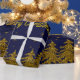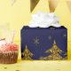 Sparkly Gold Christmas tree, stars, snow on blue W Wrapping Paper