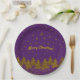 Sparkly Gold Christmas tree, stars, snow on purple Paper Plate