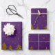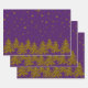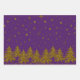 Sparkly Gold Christmas tree, stars, snow on purple Wrapping Paper Sheet