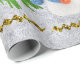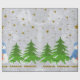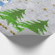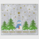 Sparkly gold stars, snowman and green tree wrapping paper