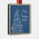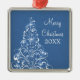 Sparkly Holiday Tree Premium Ornament, Blue Metal Ornament