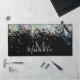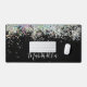 Trendy Girly Sparkles Rose Gold Glitter Custom Name Monogram Black Desk Mat