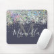Trendy Girly Sparkles Rose Gold Glitter Custom Name Monogram Blue Mouse Pad