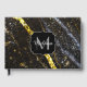 Sparkly line gold black chic abstract Monogram Guest Book