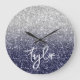 Sparkly Luxury Silver Navy Glitter Ombre Large Clock