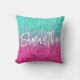 Sparkly Luxury Turquoise Hot Pink Ombre Glitter Throw Pillow