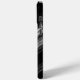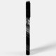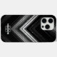 Sparkly metal neon silver black galaxy chevron Monogram iPhone 15 Case. Personalize with your initial and name. Abstract sparkly metallic black and white galaxy stripes lines digital design. No actual sparkles!