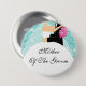 Trendy Turquoise Sparkly bride wedding party buttons for your bridal party. Our bridal party buttons feature a bride & groom set on a sparkly mosaic tile print background. Just customize with your information and you're all set to go. Available in our shop @ www.celebrateitwedding.com in additional colours! Matching bridal shower invites, thank you notes and stickers are also available.