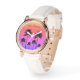 A touch of sparkly glamour on colourful, personalised watch decorated with palm tree silhouettes.