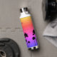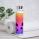 A touch of sparkly glamour on colourful, personalized water bottle decorated with palm tree silhouettes.