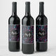 Sparkly pink blue mosaic glitter sparkle Monogram Wine Label