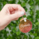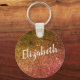 Faux sparkly nebula personalized keychain for her featuring a pink and orange background depicting shining and sparkling stars and an off white distressed custom name Elizabeth that you can personalize and change into your name or any custom name you wish to use.
