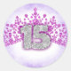 This sparkly purple and pink tiara sticker is a beautiful addition to your quinceanera invitations, return-address labels, and thank you cards. Choose between sizes and styles in this collection. Easily customize this crystal glitter and gemstone design for any birthday celebration.