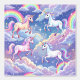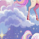 Girly sparkle rainbow and unicorns in the sky with blue sky and clouds design.