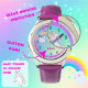 Help your child master time-telling with this adorable Unicorn Kids Learning Watch! Featuring a cute cartoon unicorn, vibrant rainbow and sparkles, and mix of soft vibrant magical colours, this watch combines fun with functionality. Designed to teach kids how to read analogue clocks, it includes minute markers (every minute as a line and every 5 minutes as a number). Perfect for young learners, this time-teacher watch encourages independence and builds essential life skills. A great gift for birthdays, holidays, or any unicorn lover’s collection. Personalize the watch with your kid's custom name too!