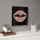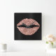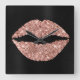 Sparkly Rose Gold Glitter Lipstick Black Foil Square Wall Clock