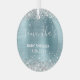 Sparkly Silver Glitter Blue Foil Baby Shower Glass Ornament