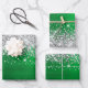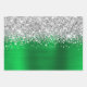 Sparkly Silver Glitter Green Faux Foil Wrapping Paper Sheet